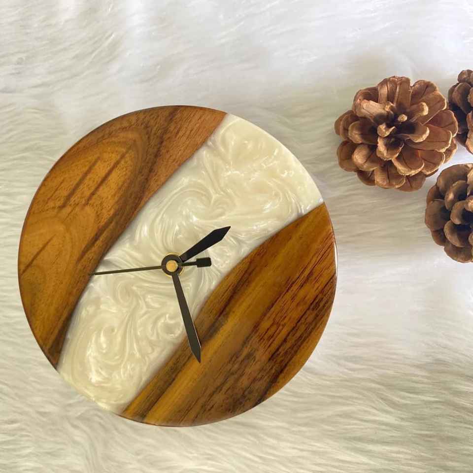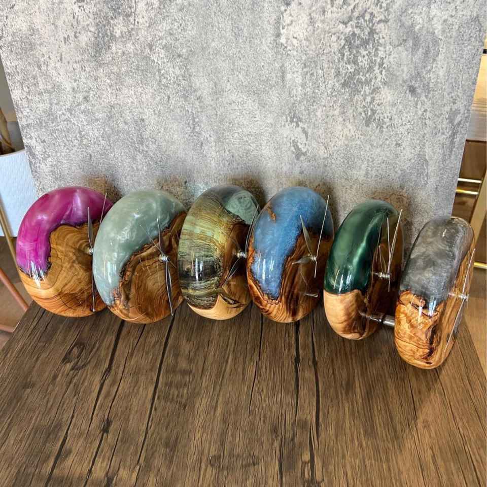 Reloj de Madera y Resina de Lujo Hecho a Mano por Pophorizon, Reloj de Mesa de Madera de Olivo con Resina Epoxi, Tamaño y Color Personalizables