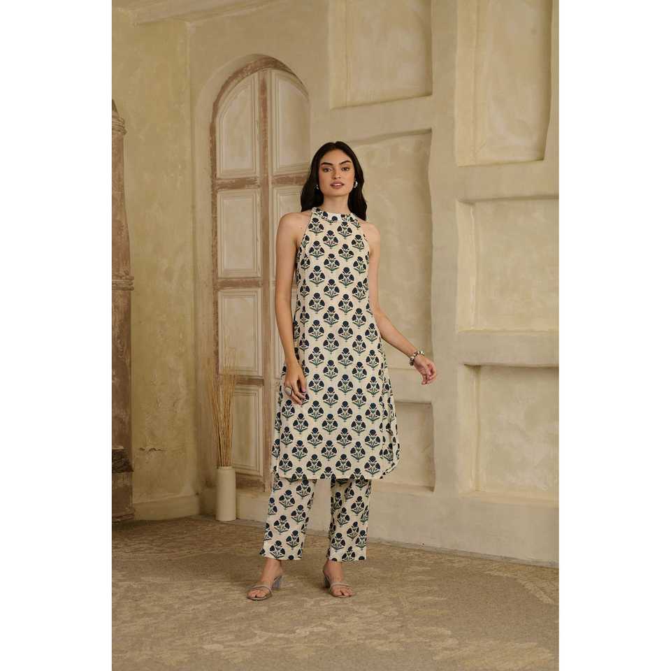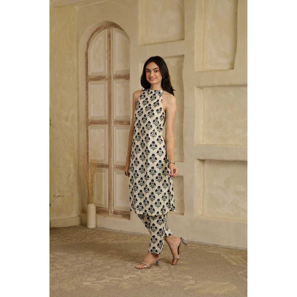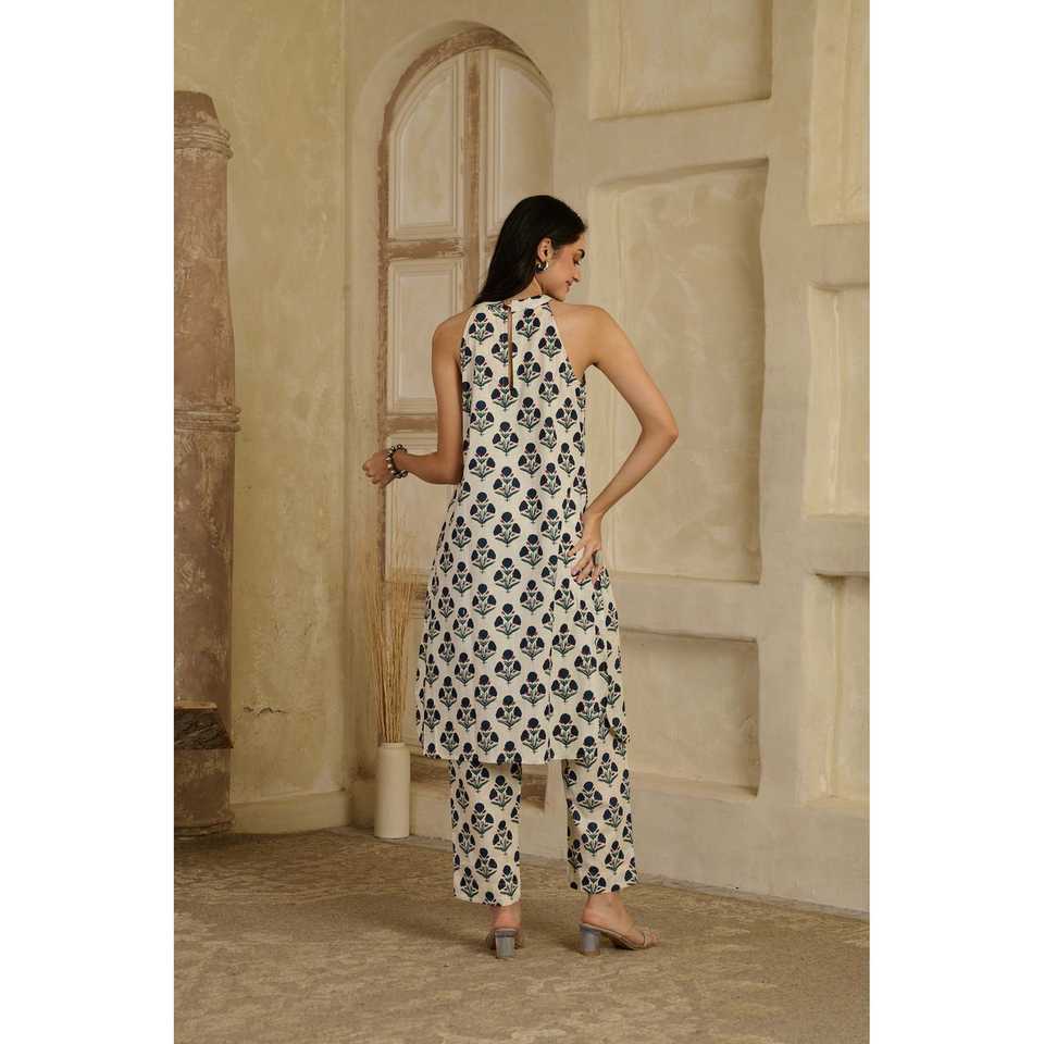 Conjunto de Top Halter sin Mangas y Kurta de Algodón Mulmul Bordado y Transpirable de Poppy Play