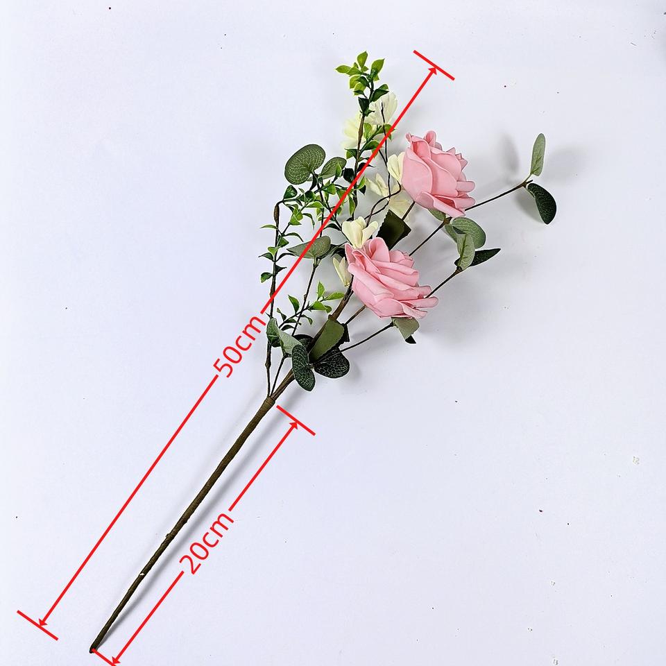 Ramos de flores simuladas de eucalipto de rosas artificiales populares para flores decorativas