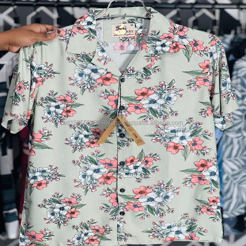 Camiseta de Manga Corta con Estampado Floral Hawaiano para Hombre, Modelo 01 de Marca Popular, de Poliéster, Lino y Viscosa, Talla L, Informal, para Otoño y Vacaciones de Verano