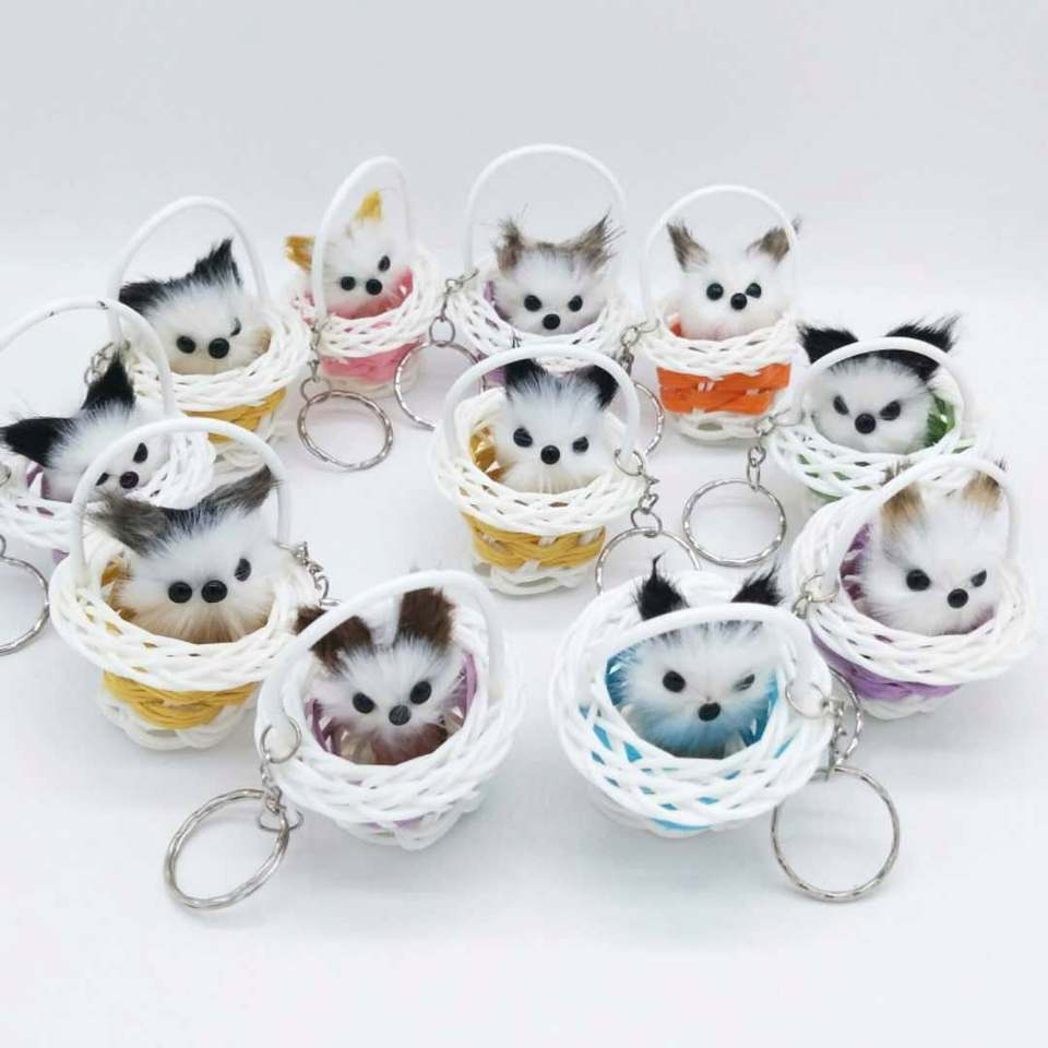 Popular gato zorro llaveros de peluche juguetes pequeña cesta redonda gato simulación gatito característica Mini cesta gatito peluche llavero