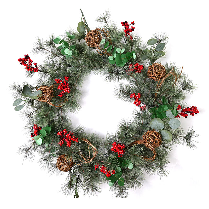 Guirnalda Navideña Personalizada Popular para Decoración de Paredes en Fiestas, Guirnalda de Piñas y Bayas de 30 Pulgadas