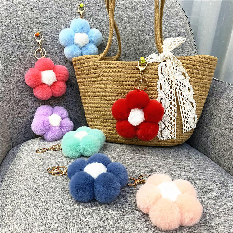 Popular lindo flor Pom bola llavero lindo Flor de felpa llavero coche bolsa colgante accesorios coche llavero regalo