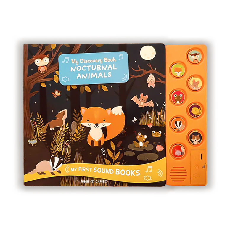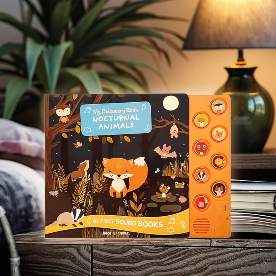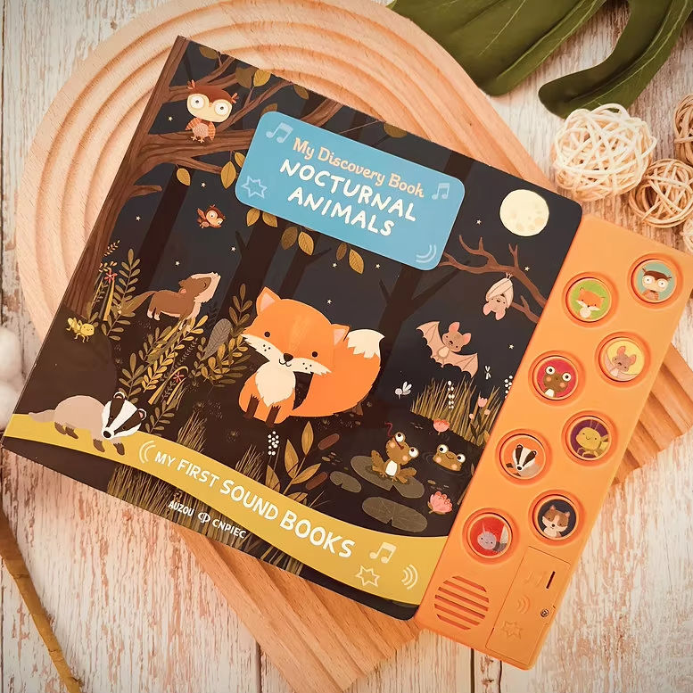 Libro de Sonidos de Animales Nocturnos con 8 Botones de Diseño Popular para Niños con Cubierta Rígida de Cartón Ecológico