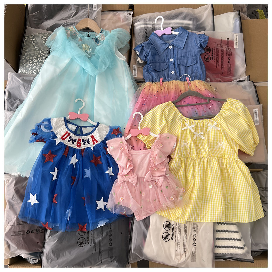 Lotes al por mayor de ropa infantil usada de diseño popular, vestidos de verano para niños, entrega aleatoria de vestidos de princesa para niños