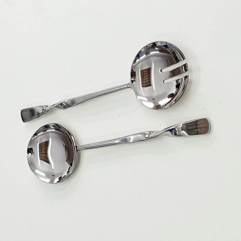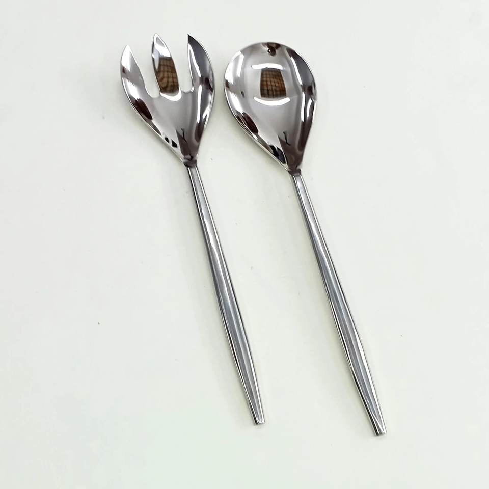 Juegos de servidor de ensalada de Metal de diseño Popular con mango curvo para boda y fiesta Juegos de servidor de ensalada de uso de mesa