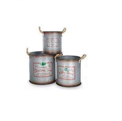 Juego de Diseño Popular, Cubo de metal de diseño Vintage para Navidad, de lujo, calidad, artículo de regalo de Navidad, cubo redondo de Metal de bajo precio