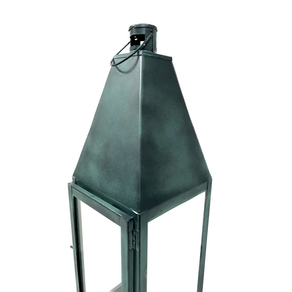 Portavelas de Metal de pátina verde azulado de estilo europeo, soporte de pilar de farol de madera hecho a mano para Navidad, boda, decoración del hogar, madera
