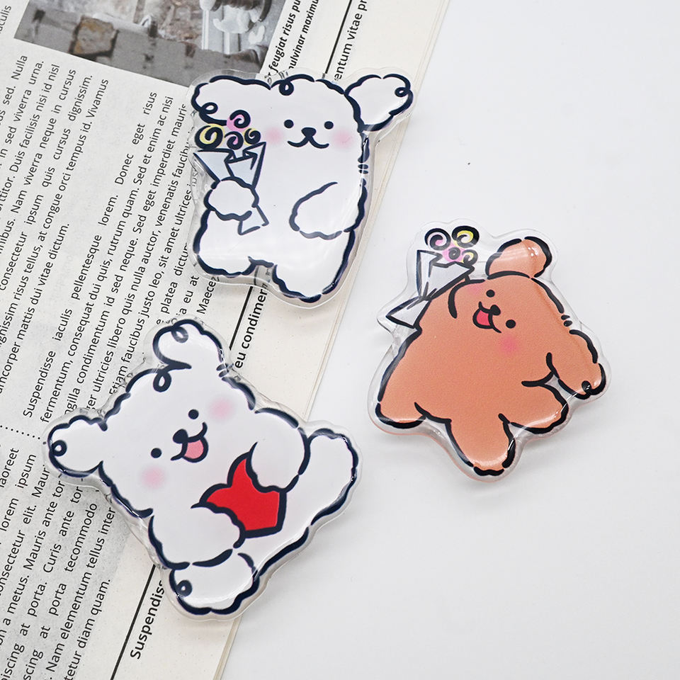 Soporte de agarre de teléfono de acrílico personalizado de fábrica Popular diseño de perro lindo enchufe de plástico Universal para teléfono móvil portátil gratis