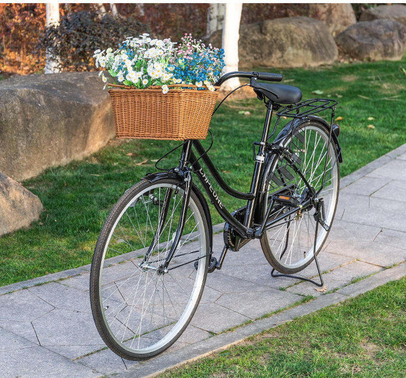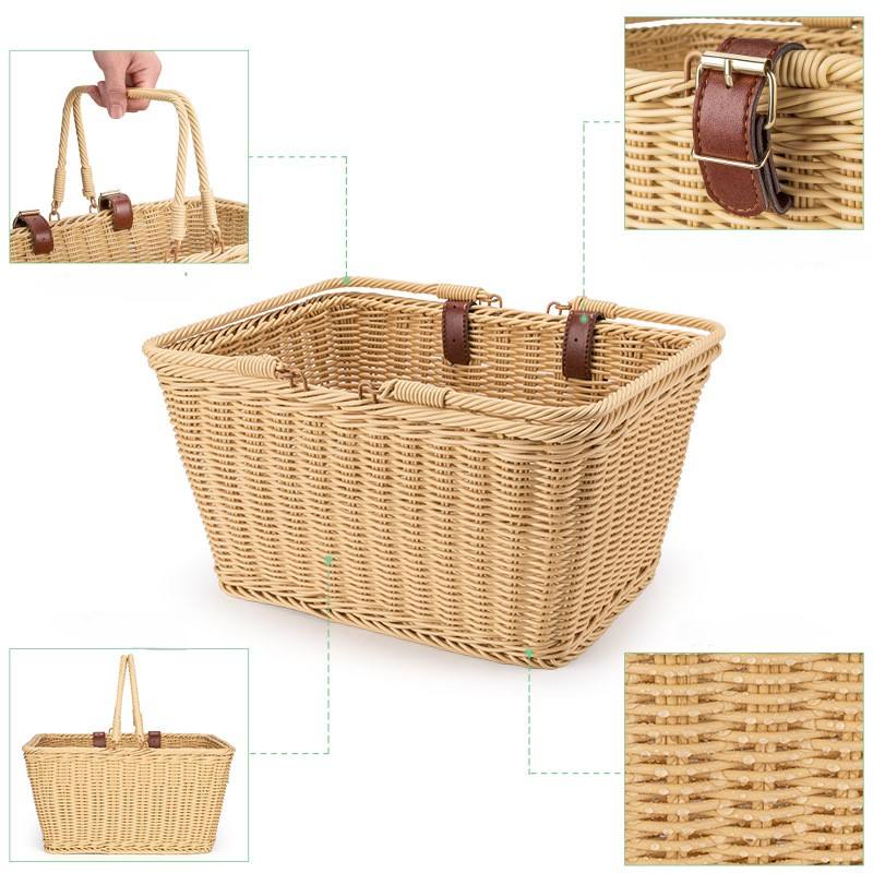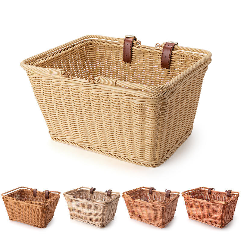 Cesta Retro para manillar delantero de bicicleta de moda Popular, cesta de bicicleta de paja tejida a mano de mimbre duradero