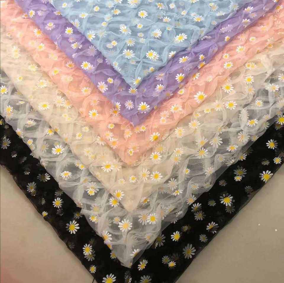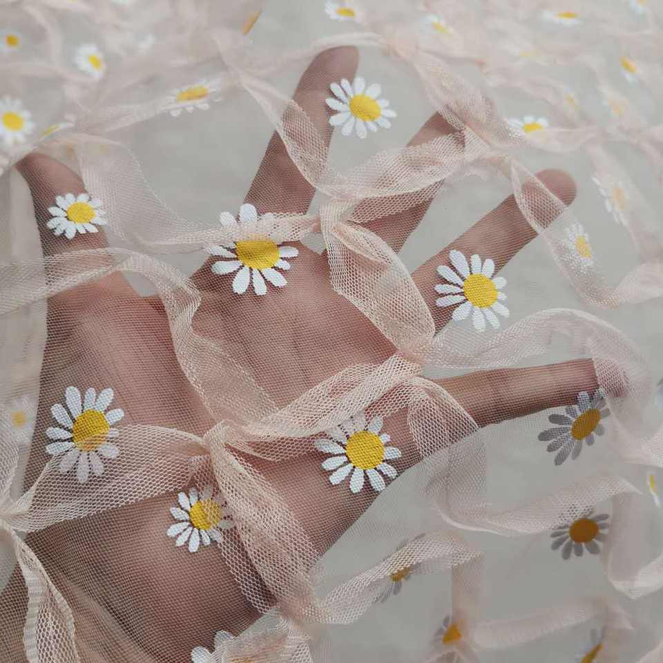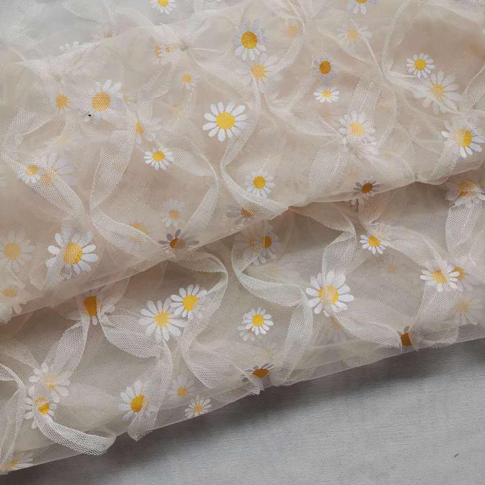 Popular moda plisada arruga plisada volante tul Margarita flor encaje tela para tutú vestido falda