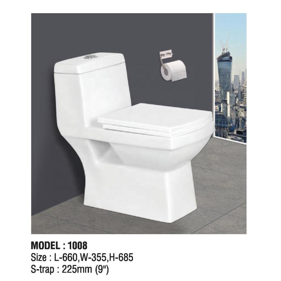 Inodoro de lavado blanco de una pieza de cerámica de WC montado en el suelo popular-Inodoro de armario de agua monobloque, precio de mercado al por mayor