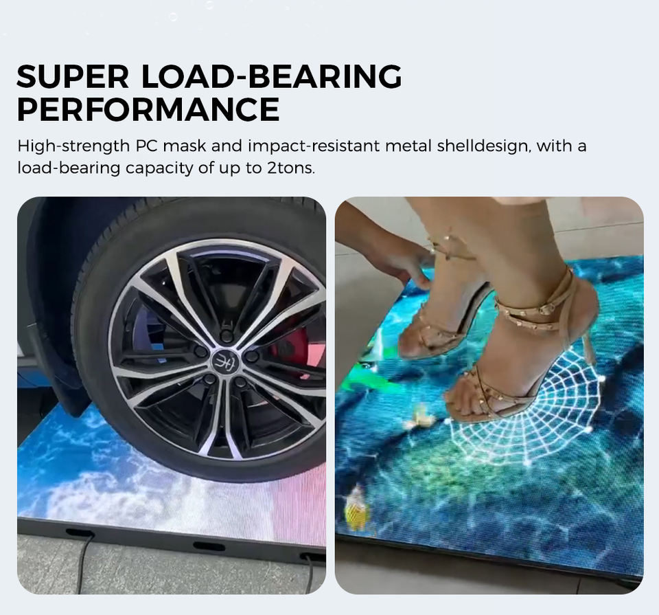 Pantalla LED para Piso Popular P2.97, Pantalla de Piso Interactiva para Bailar, Pantalla de Piso de Empalme Continuo para Centros Comerciales