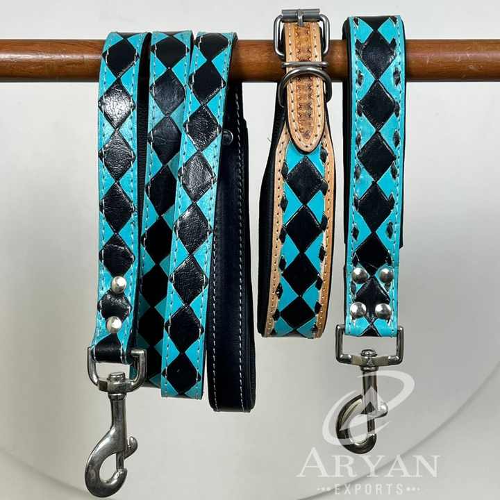 Product name:Hand Tooled Checkered Leather Dog Leash Set