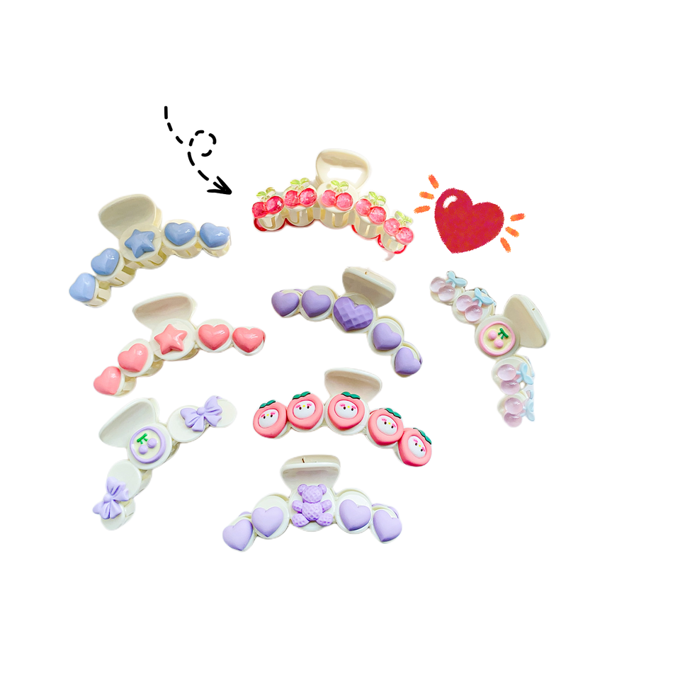 Pinza de pelo coreana con forma de macarrón, fruta y florNombre del producto