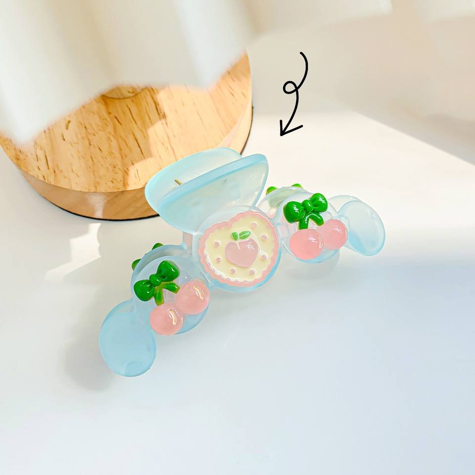 Pinza de Pelo Grande Transparente Estilo Coreano Popular de 10CM con Diseño de Macaron y Frutas, Pinza de Pelo Linda para Niñas, para la Parte Trasera de la Cabeza