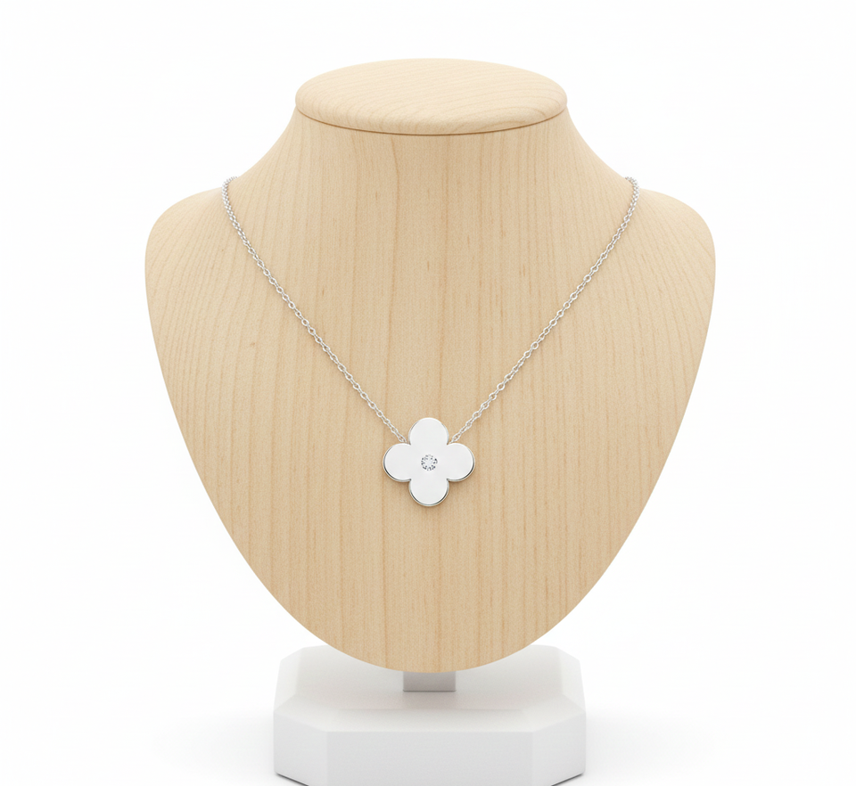 Collar con Colgante de Trébol Minimalista Moderno y Popular para Mujer, Alta Calidad, Certificado por Terceros, Oro Rosa, Plata de Ley