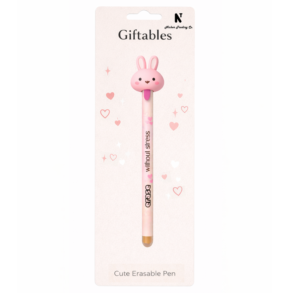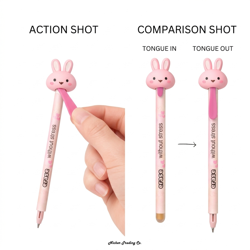 Bolígrafo de Gel Azul/Negro Novedoso con Diseño de Conejito Lindo y Lengua Extraíble, Borrable, para Niños, Estudiantes, Fiestas y Oficina