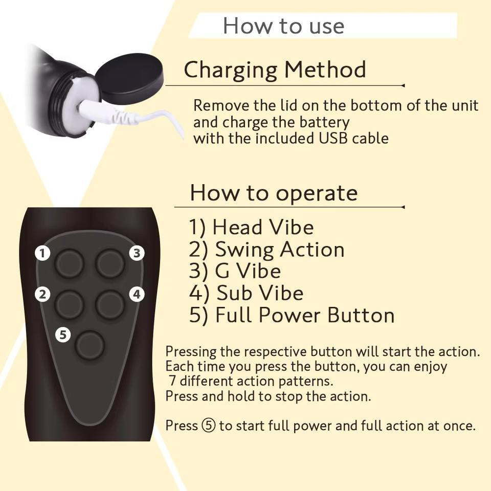 7 patrones de vibración, 7 patrones de swingingCaracterística de producto de bienestar sexual