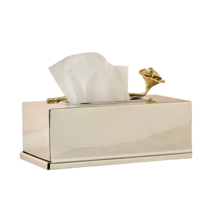 Caja de pañuelos popular de forma rectangular con acabado dorado metálico para la encimera del baño, decoración de mesa para el hogar y la oficina.
