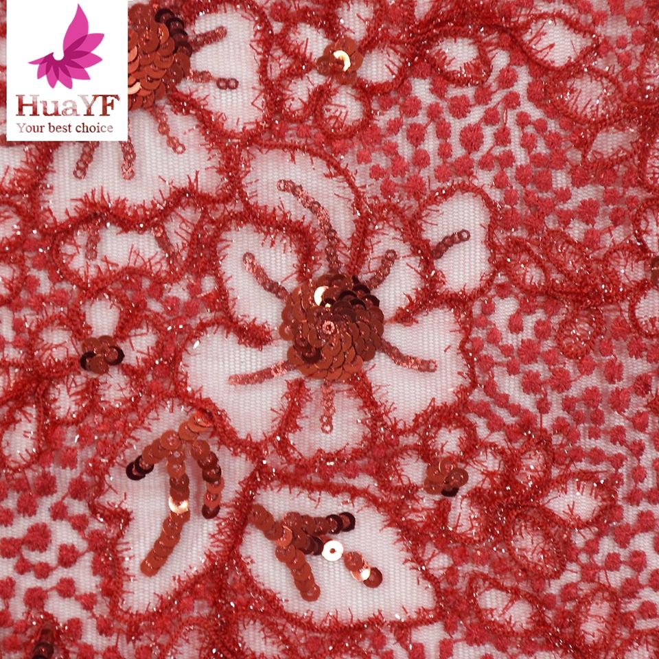 Cordones de red rojos populares con lentejuelas brillantes Malla suave bordada de alta calidad con lentejuelas para Aso Abi 2017