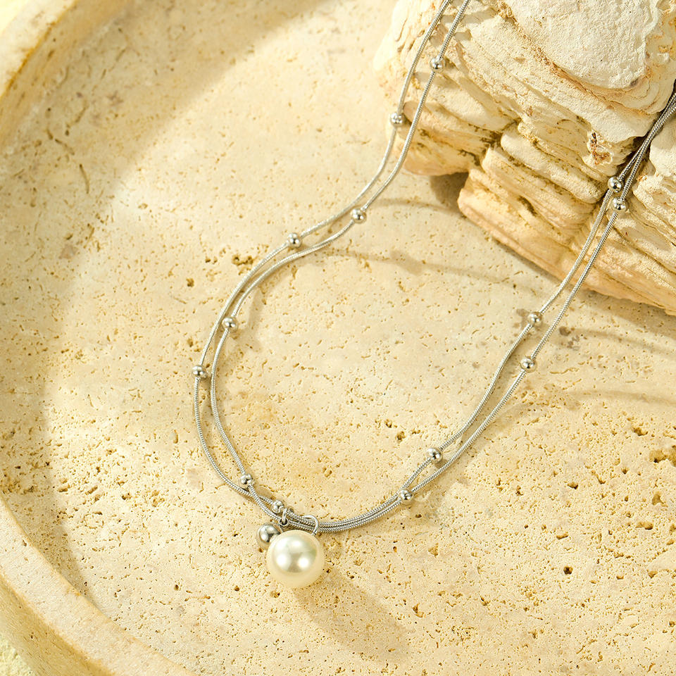 Venta popular Collar de joyería de moda Collar de doble capa 18K Collar con colgante de perla de acero inoxidable para mujer
