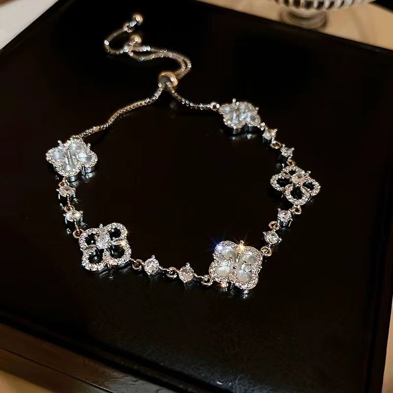 Venta Popular al por mayor cuatro pétalos en forma de mujeres lujo circón brazaletes joyería moda ajustable circón pulsera