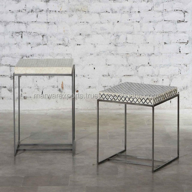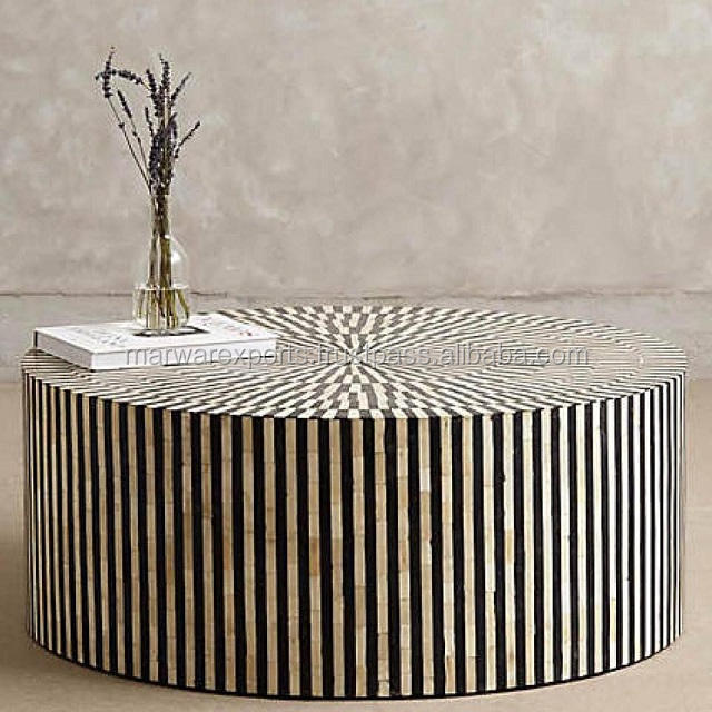 Mesa de Centro Popular de Madera Maciza con Incrustaciones de Hueso, Diseño Moderno para Sala de Estar y Oficina en Casa