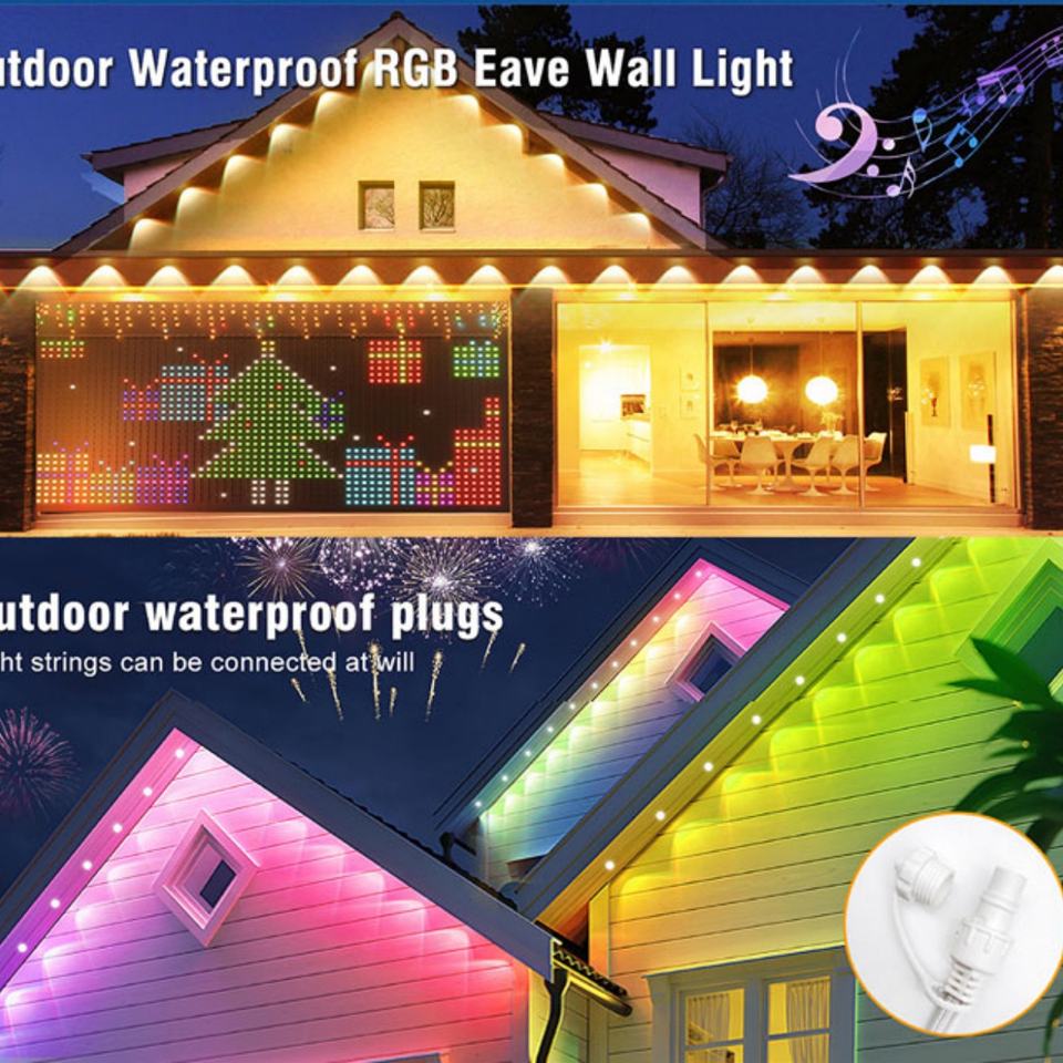 Luces LED Inteligentes para Aleros, Resistentes al Agua, con Clasificación IP67, Control por WiFi y Bluetooth, Diseño para Decoración Navideña