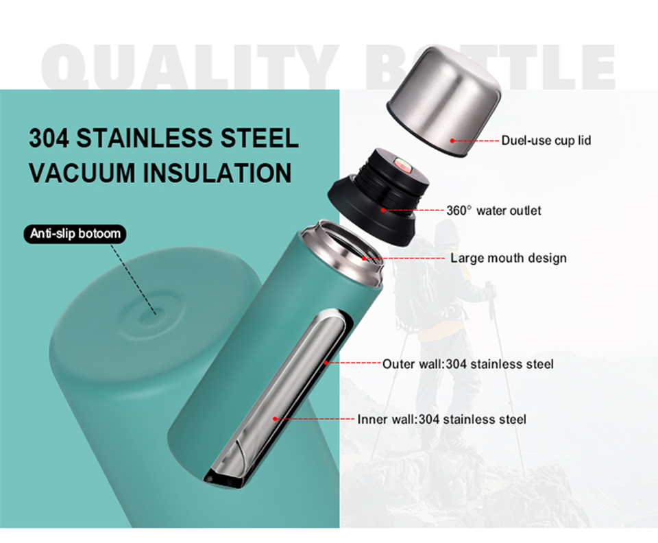 Botella de Acero Inoxidable al Vacío, Estilo Popular, Rendimiento Térmico de 6-12 Horas, Gran Capacidad, Ecológica, Portátil, Clásica