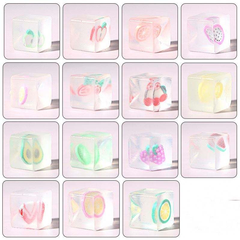 Juguete Sensorial Antiestrés Popular de TPR Transparente con Forma de Cubo de Hielo de Frutas para Apretar y Divertir