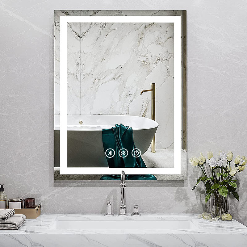 Espejo de baño con luz LED inteligente de diseño moderno, desempañador de pantalla táctil, reloj Digital, forma rectangular, baño LED Popular iluminado