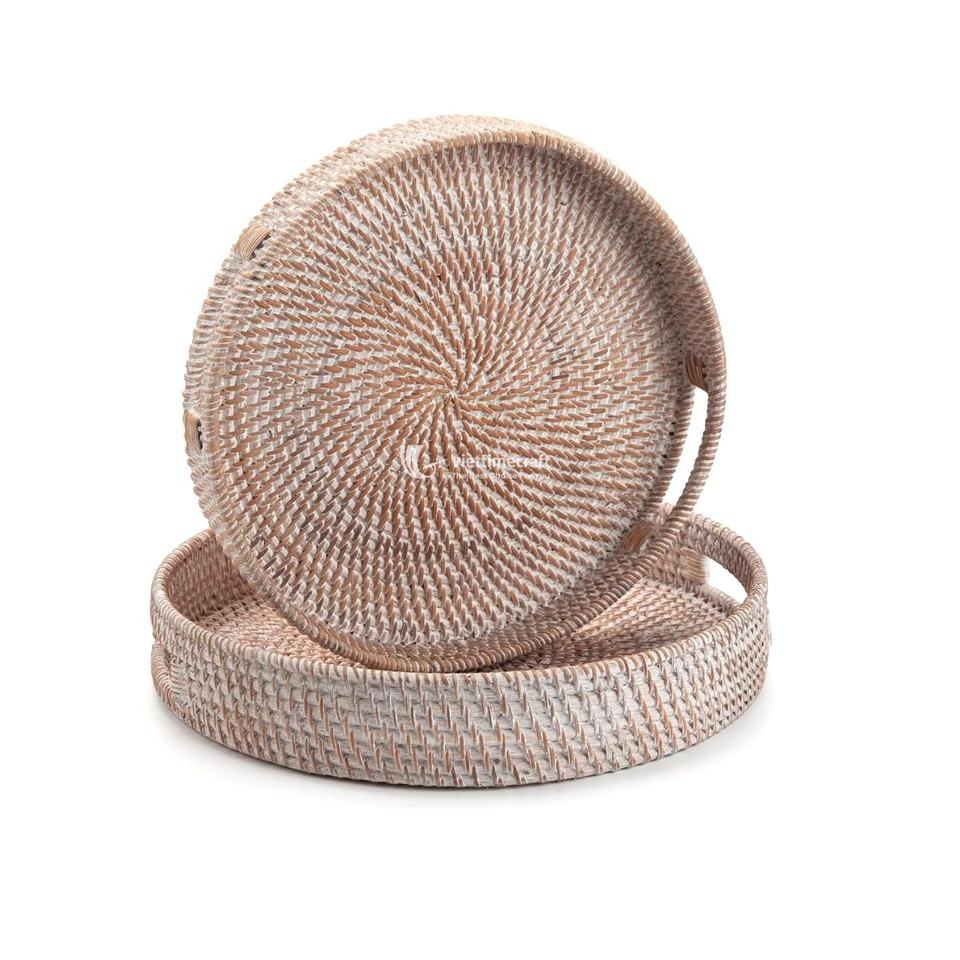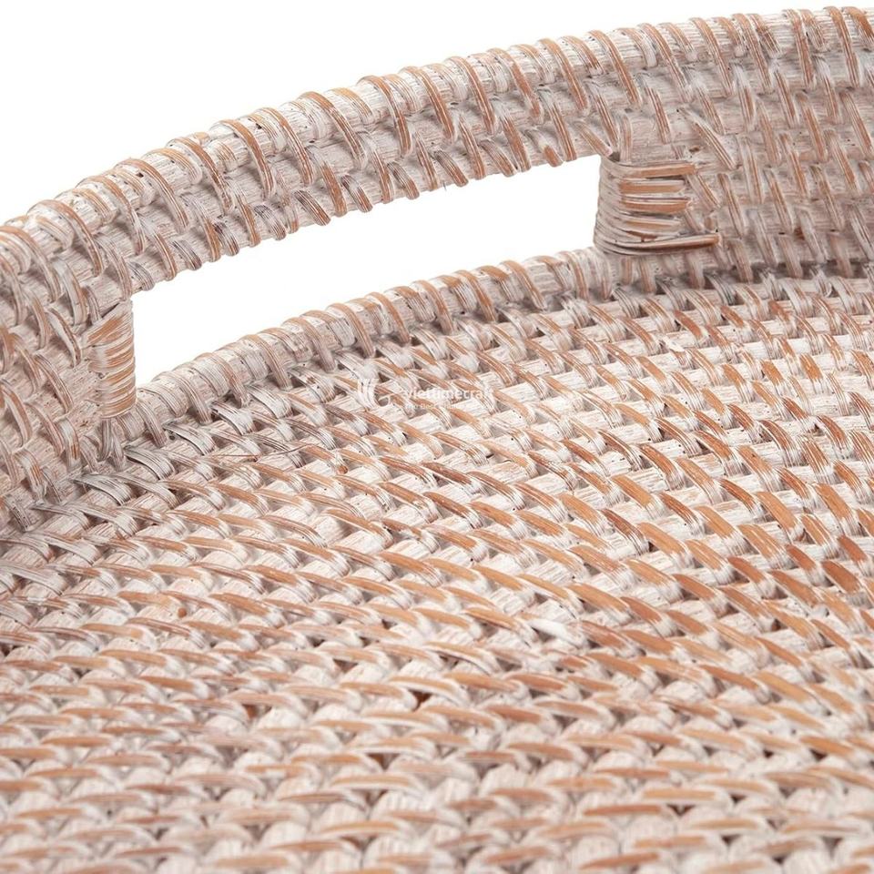 Bandeja de Servicio Redonda de Ratán Tejido, Estilo Decorativo, Bandeja Redonda de Ratán Decorativa para Mesa de Centro de Sala de Estar