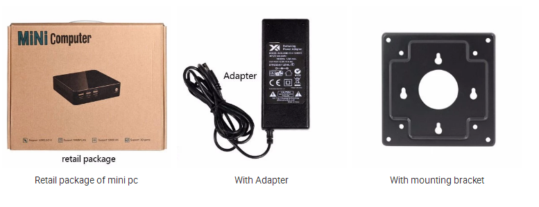 La venta de las unidades: Un solo artículo Tamaño de paquete único: 17.8X12.5X5 5 cm Solo Peso bruto: 1.000 kg Tipo de paquete: 1) Artículo del OEM en la caja de venta al por menor/tamaño de embalaje 260x135x203mm 2) 10 unidades por paquete de cartón 3) Contenido del paquete: 1 dispositivo 1 x adaptador de corriente de 12v 3A con cable 1 x soporte de ratón VESA 1 x tornillo (paquete) Dispositivo (H x W x D) 177x125x55mm 1,24Kg peso neto, peso bruto 2,1Kg