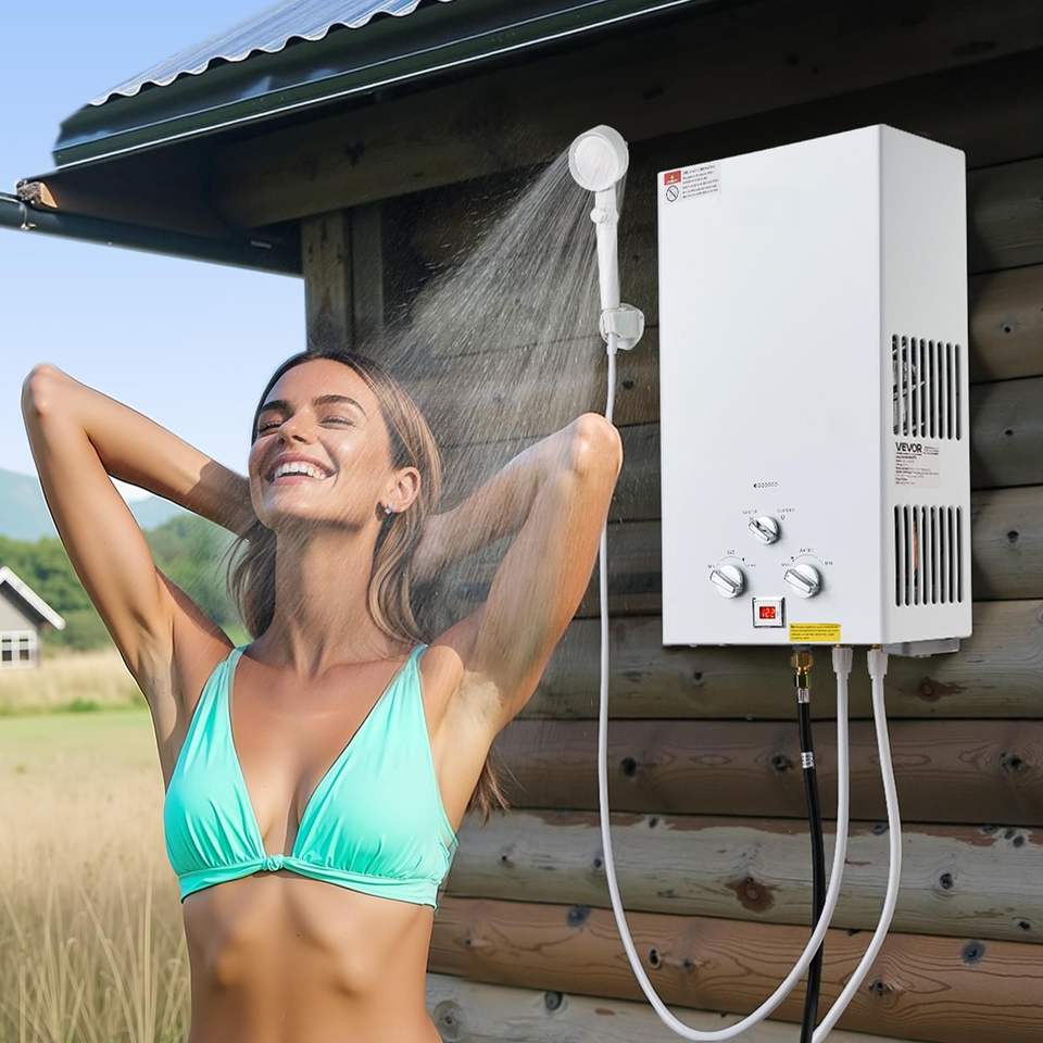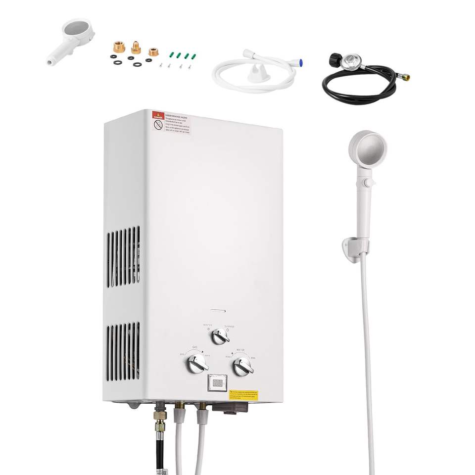 Calentador de Agua Portátil de Propano sin Tanque de 10L para Exteriores con 68000 BTU y 2.64 GPM, Juego de Accesorios para Agua Caliente Instantánea + Re
