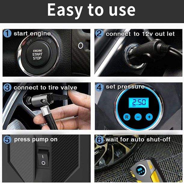 Compresor de Aire Portátil de 12V CC, Inflador Digital de Neumáticos con Manómetro de 150psi, Luz LED de Emergencia para Neumáticos de Automóvil