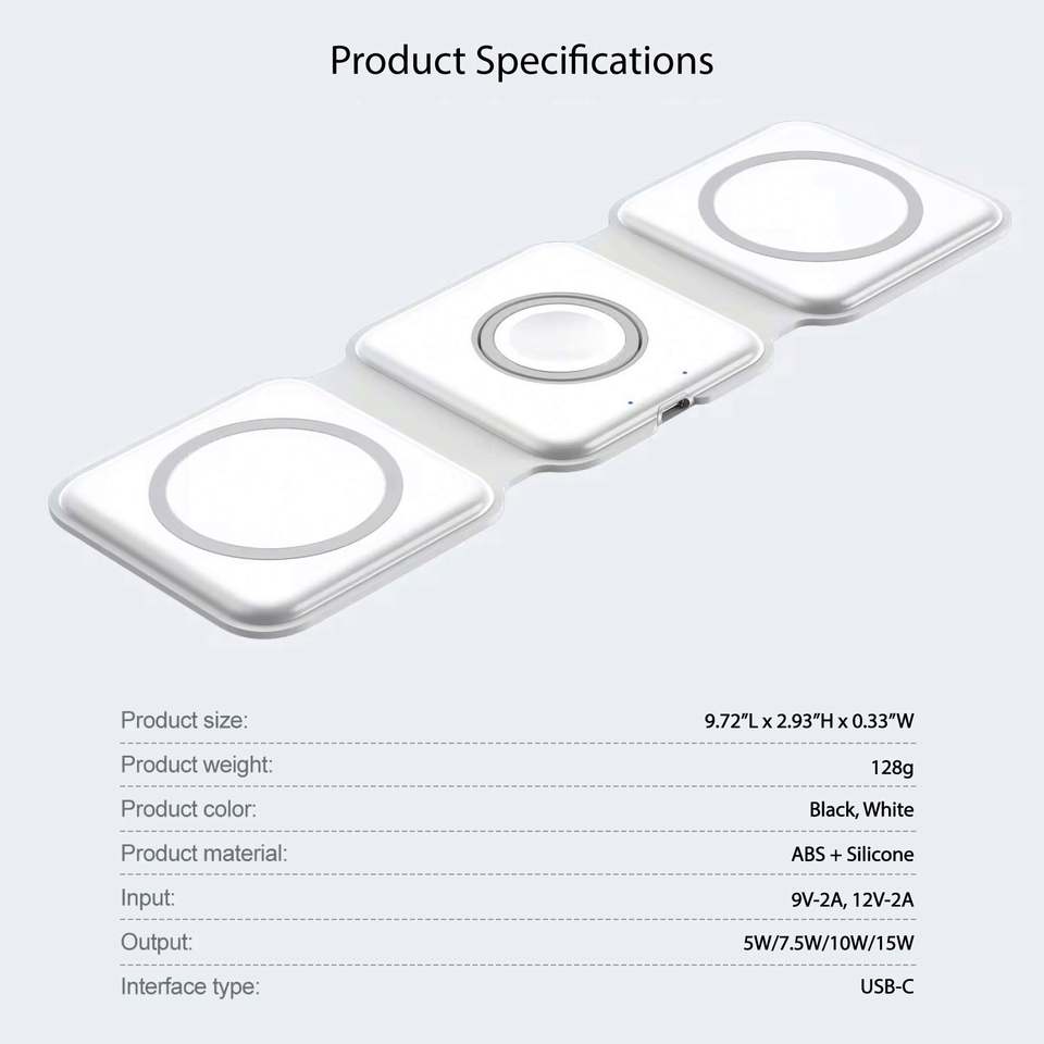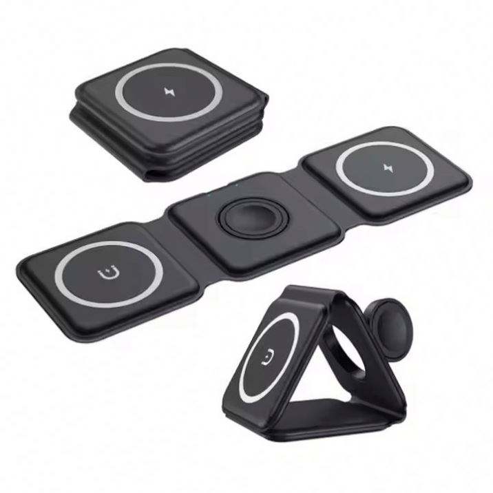 Cargador Inalámbrico Rápido Plegable 3 en 1 Inteligente de 15W, Estuche de Viaje Magnético, Regalos Promocionales Empresariales Dobles, Logotipo Personalizado