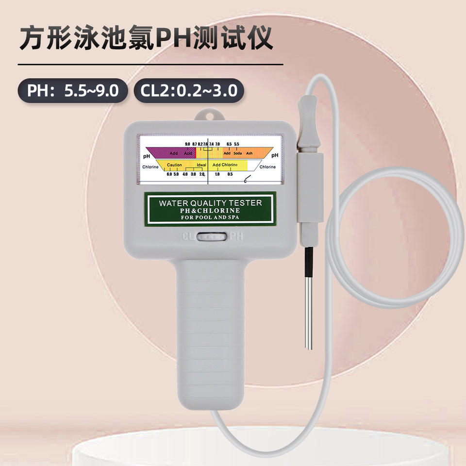 Analizador de calidad del agua portátil 2 en 1 con sonda para medir el cloro y el pH en piscinas y spas.