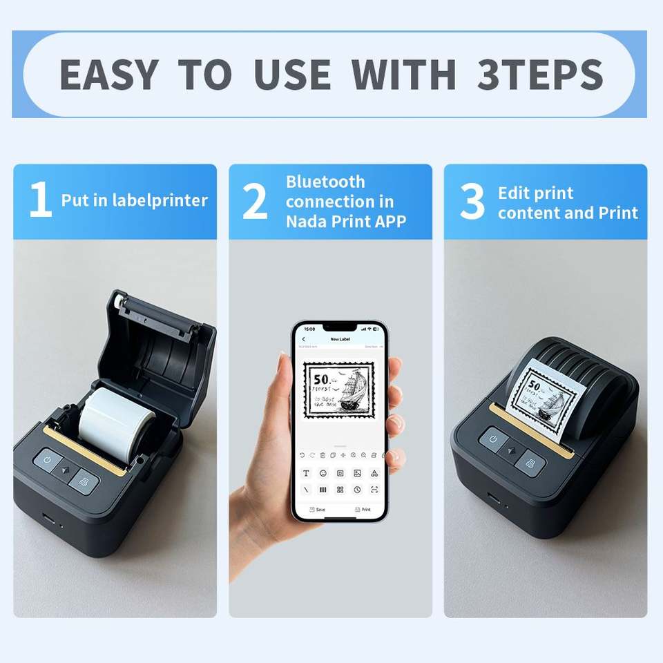 Impresora Portátil de Etiquetas Térmicas de 2 Pulgadas con Batería de 2000 mAh y 203 dpi - En Stock para Pequeñas Empresas, Impresión de Códigos de Barras y Direcciones