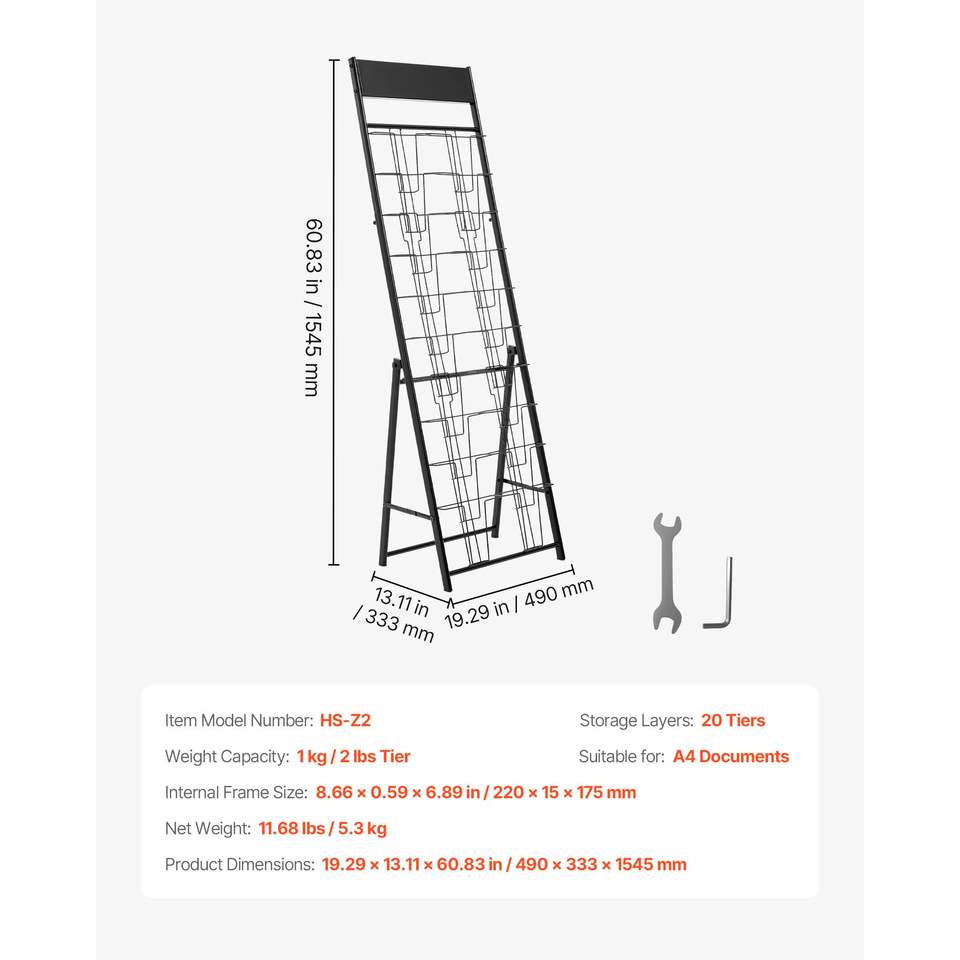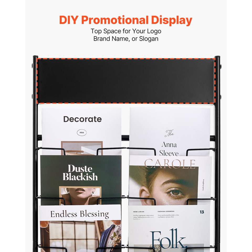Exhibidor de Folletos Portátil de 20 Bolsillos, Exhibidor de Revistas y Periódicos de Metal para Exhibición de Literatura