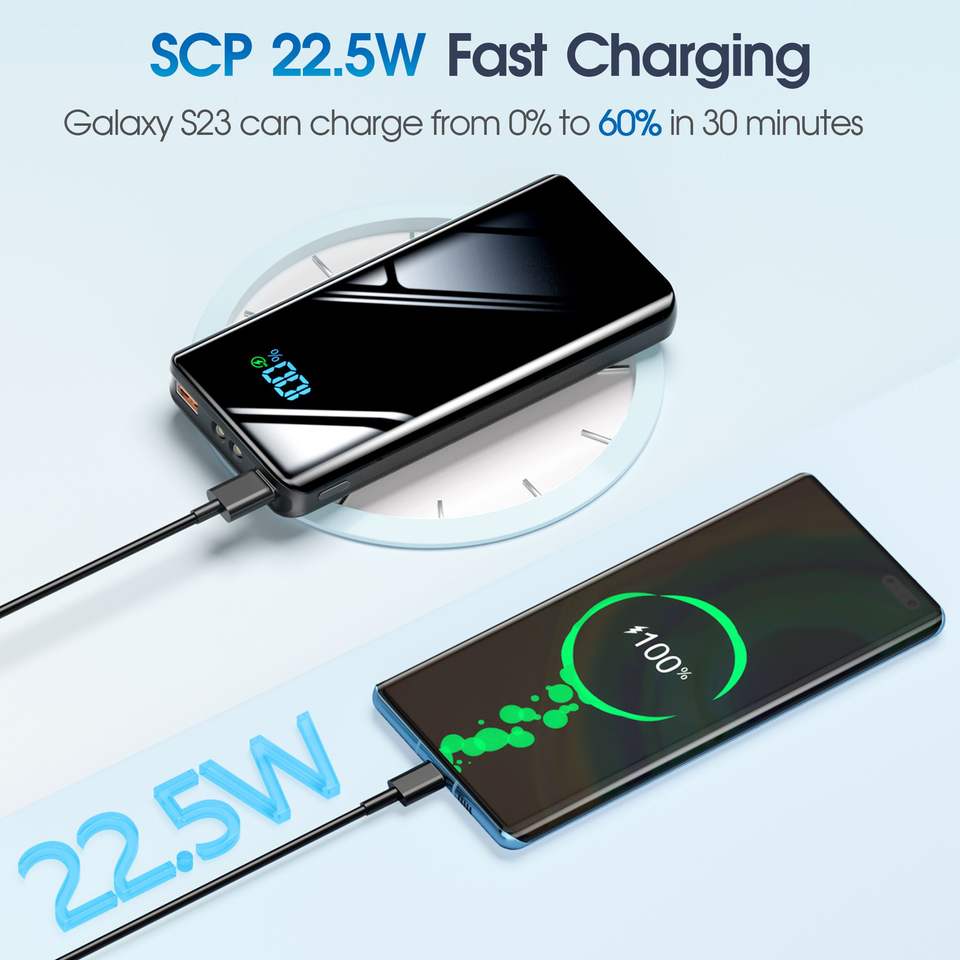 Banco de Energía Portátil de 20000mAh con Carga Rápida USB C, Pantalla LED, Compatible con Teléfonos