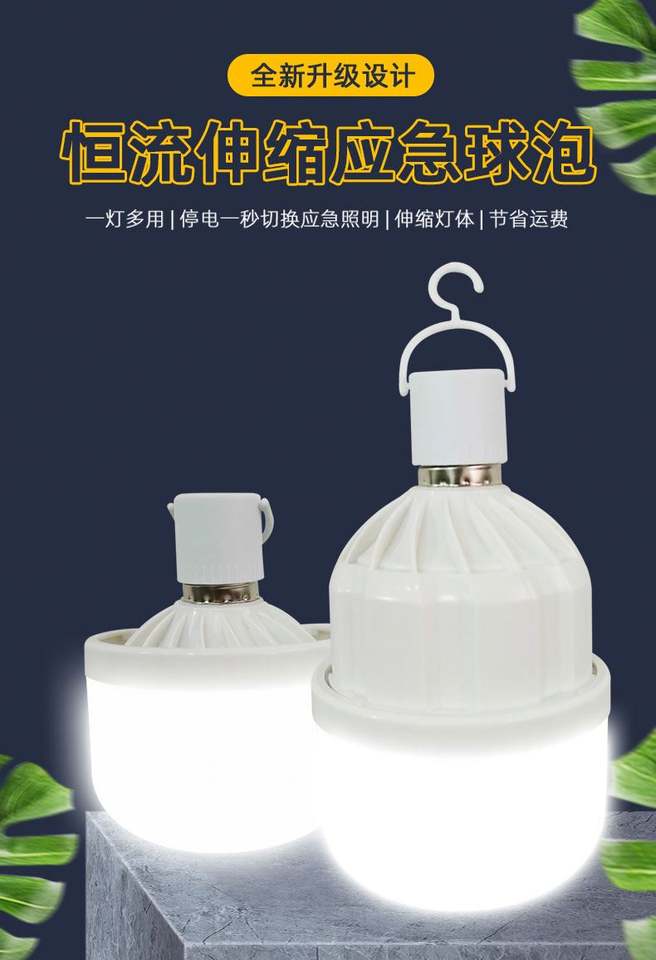 Bombilla LED de Emergencia Portátil de 20W 1800mA con Batería de Larga Duración, Multifuncional para Uso Interior/Exterior, Compatible con B22 E26 E27 para Residencias