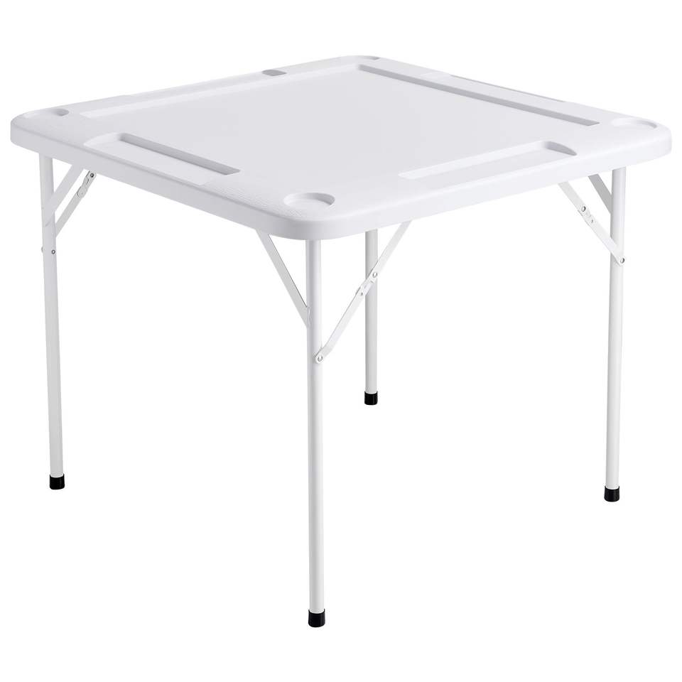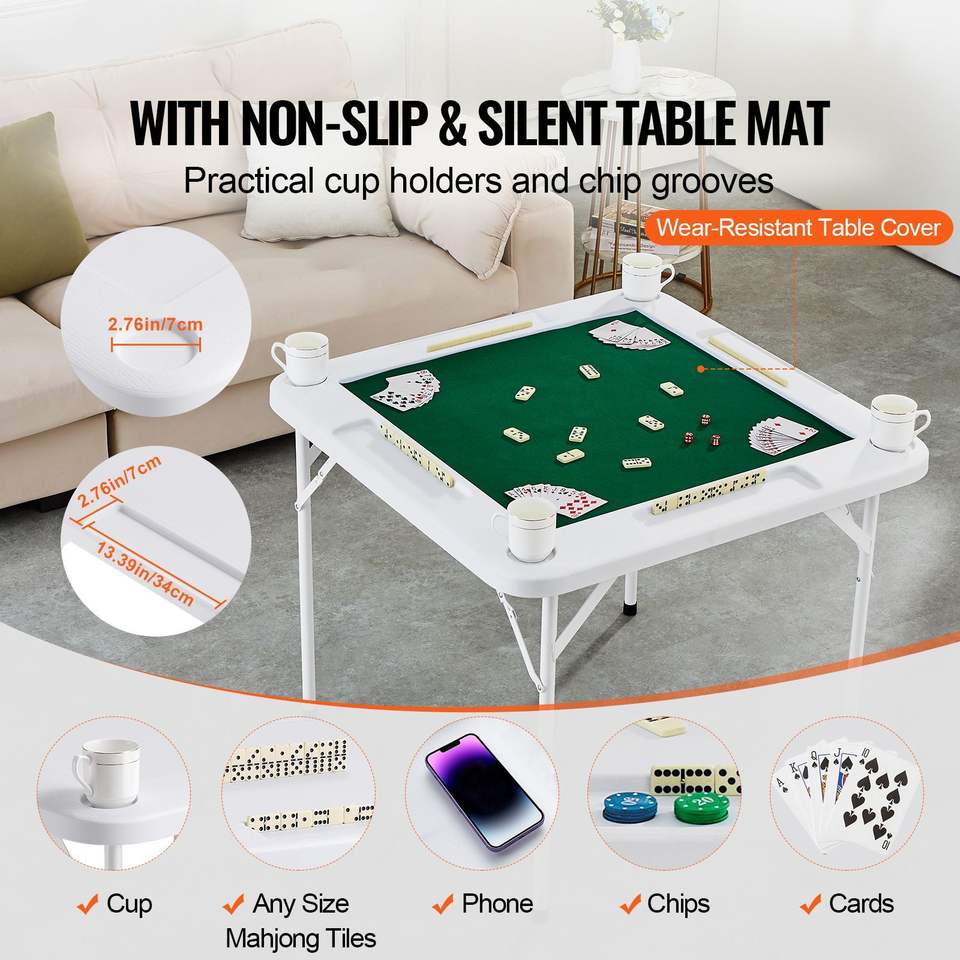 Mesa de Mahjong Portátil para 4 Jugadores, Color Verde, con Superficie Resistente al Desgaste, Mesa Cuadrada para Cartas con 4 Portavasos, Mesa de Dominó Plegable