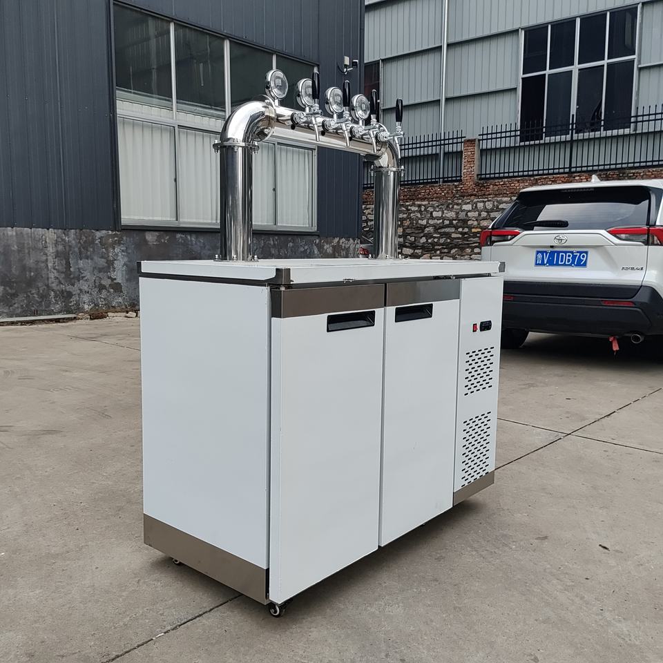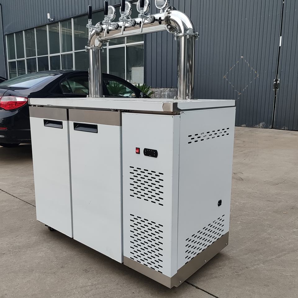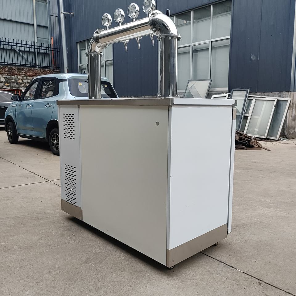 Torre de cerveza portátil de acero inoxidable tipo D de 4 grifos con bandeja de goteo Dispensador de barril de refrigeración Método de agua