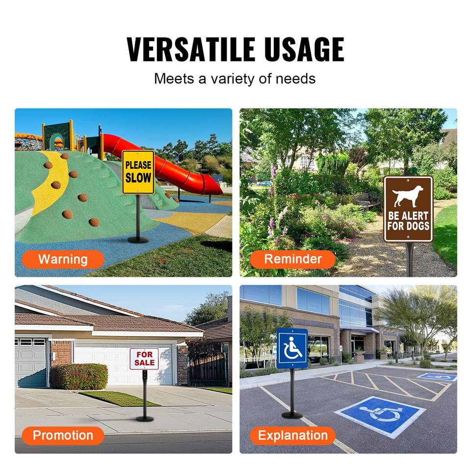 Poste de Señalización Portátil de Hierro Fundido de 4 pies con Base de Plástico Duro y Acero Resistente, Soporte con Ruedas en Forma de U para Señales de Tráfico