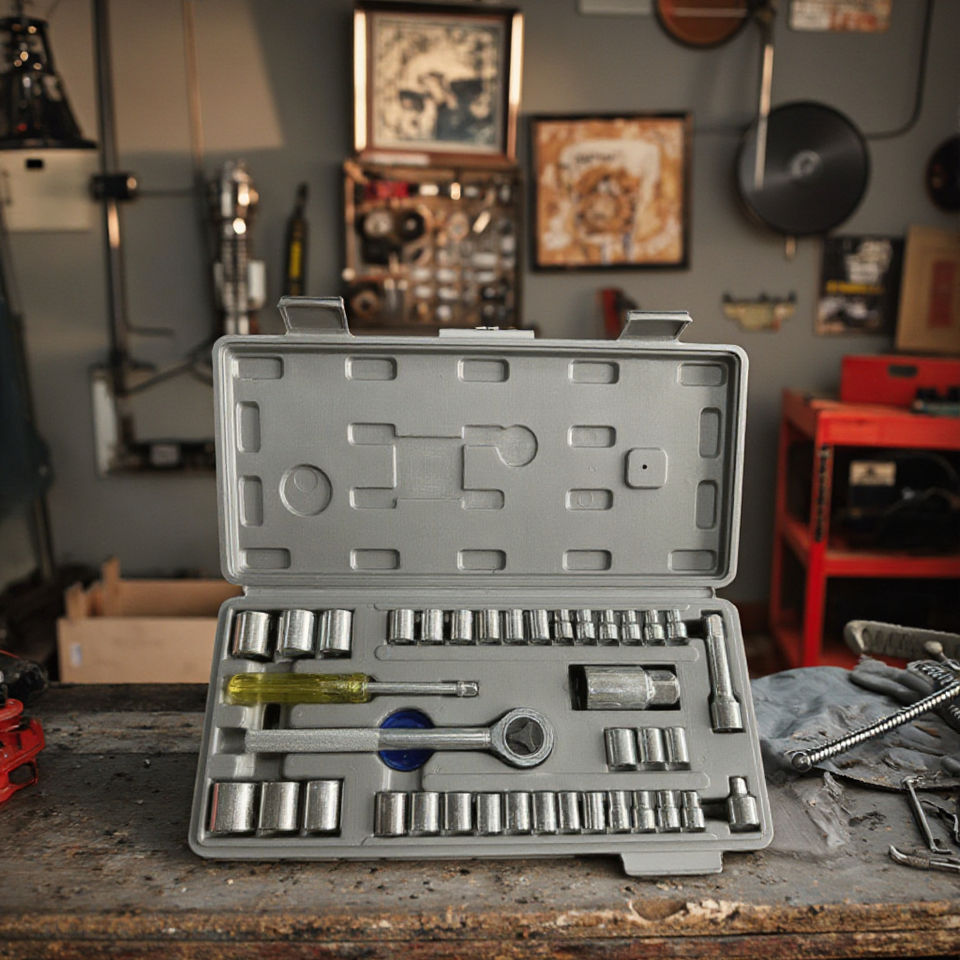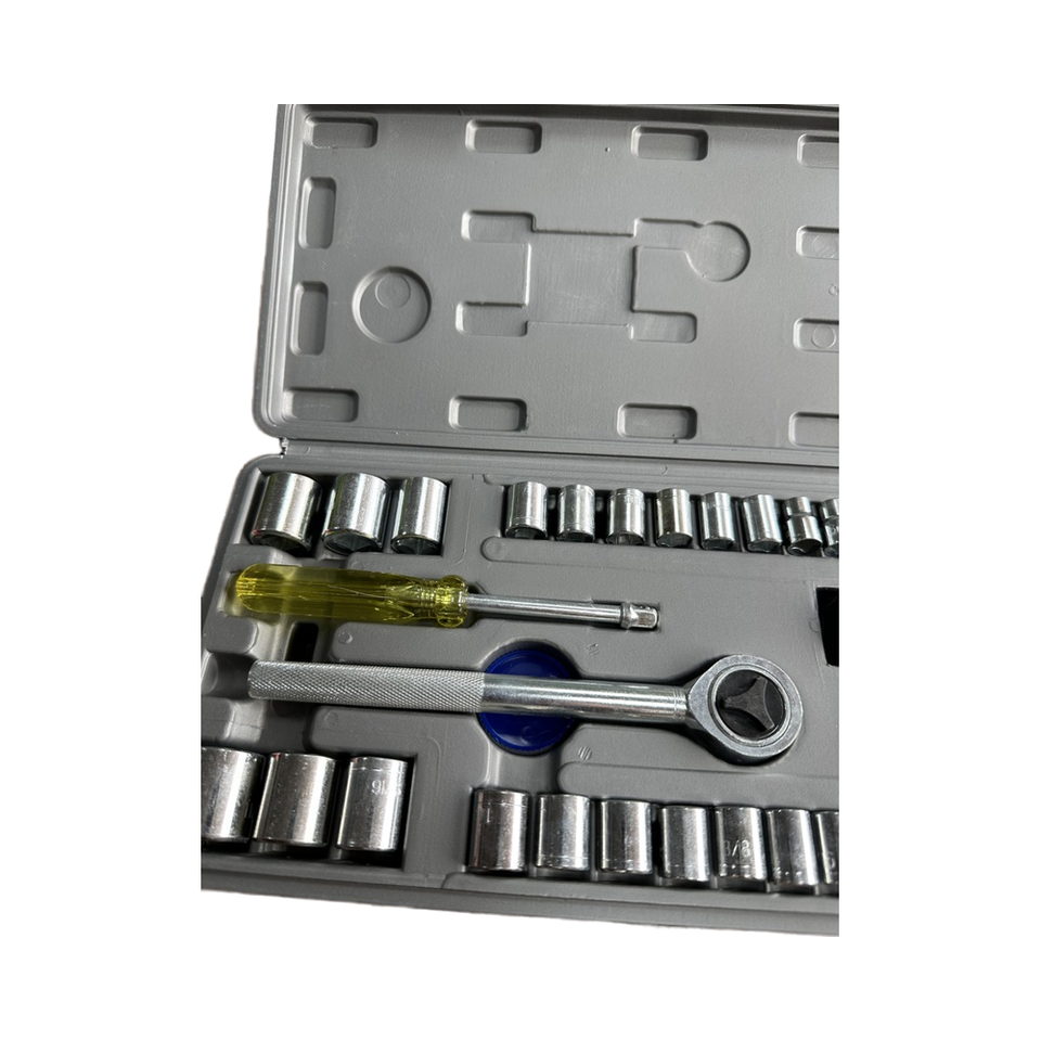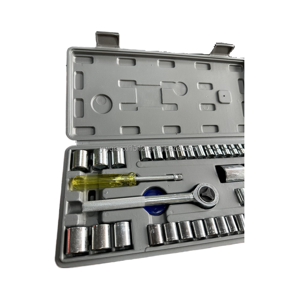 Juego de Llaves de Tubo Portátil de 40 Piezas, Duradero, Combinación de Trinquete para Autos/Bicicletas, Herramienta de Reparación de Emergencia, Estuche Rígido Portátil OEM