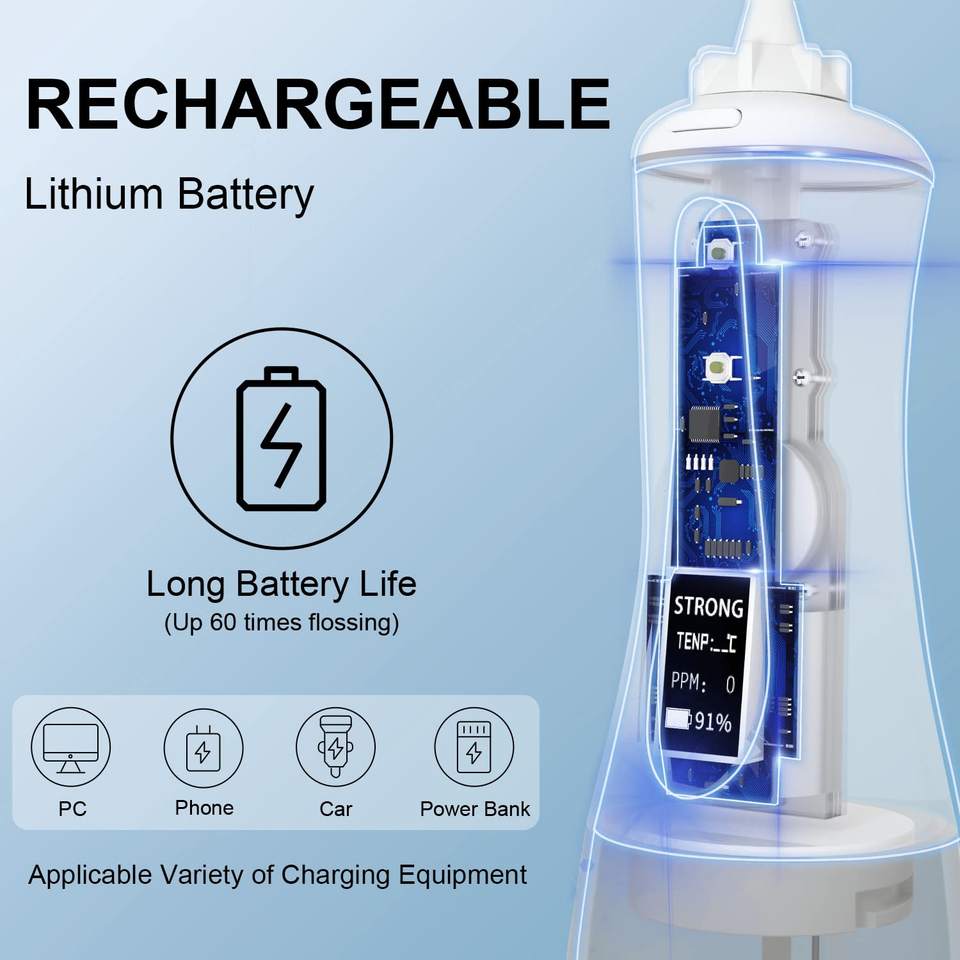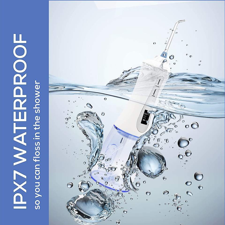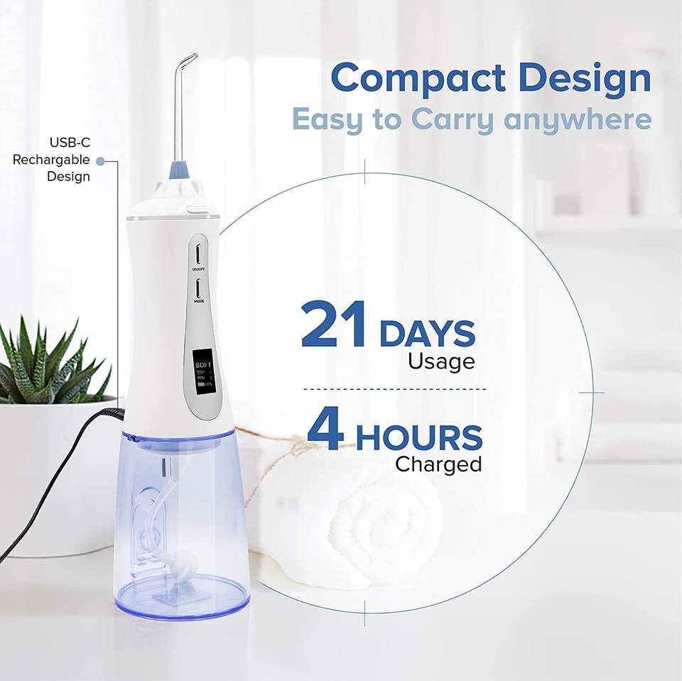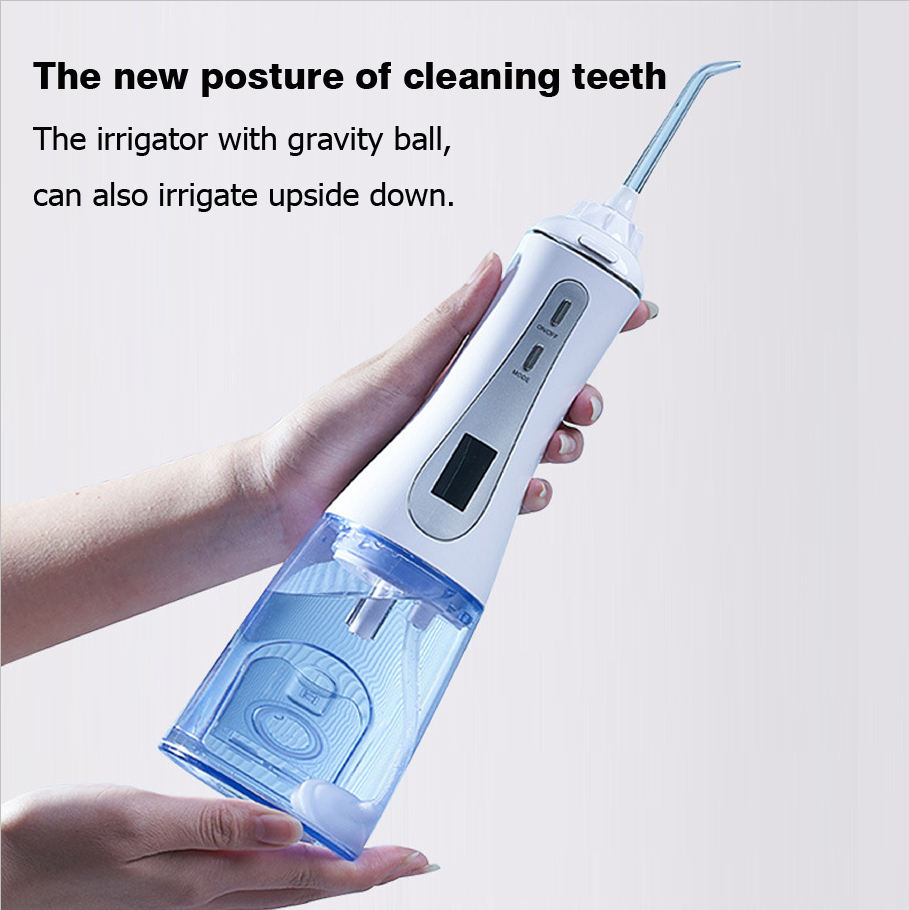 Portátil 5 modos de limpieza 350ML Pantalla OLED Limpieza de dientes Flosser de agua Irrigador bucal dental inalámbrico con 6 u 8 boquillas