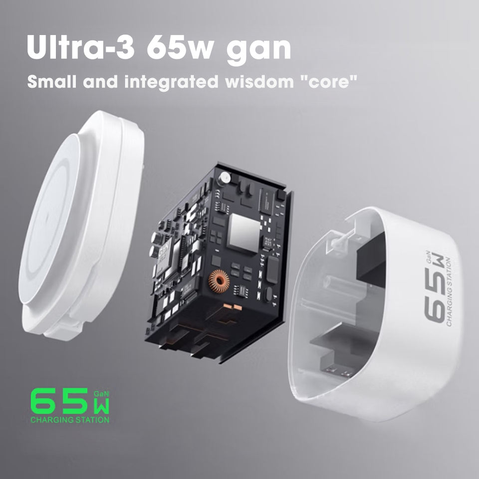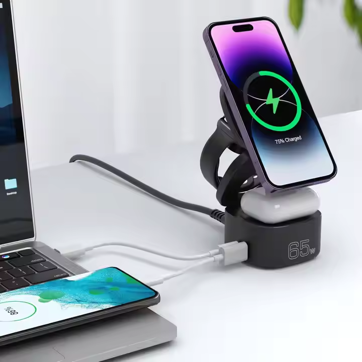 Base de Carga Rápida GaN Portátil de 65 W, Cargador Inalámbrico Magnético Plegable 5 en 1, QC3.0, PD Tipo-C, 65 W, UE, para Viajes y Uso en Escritorio