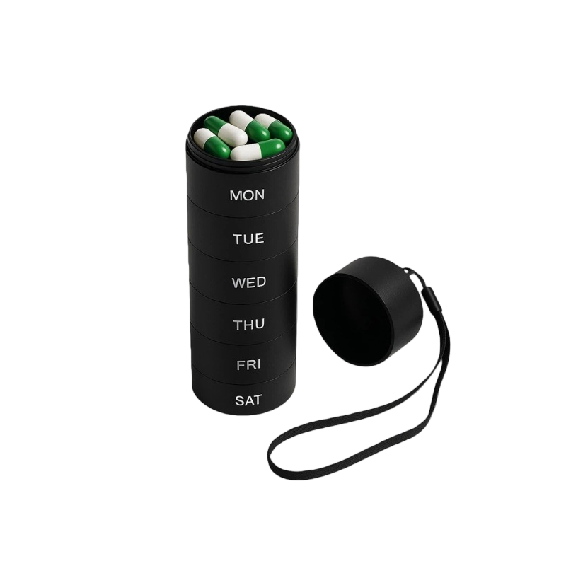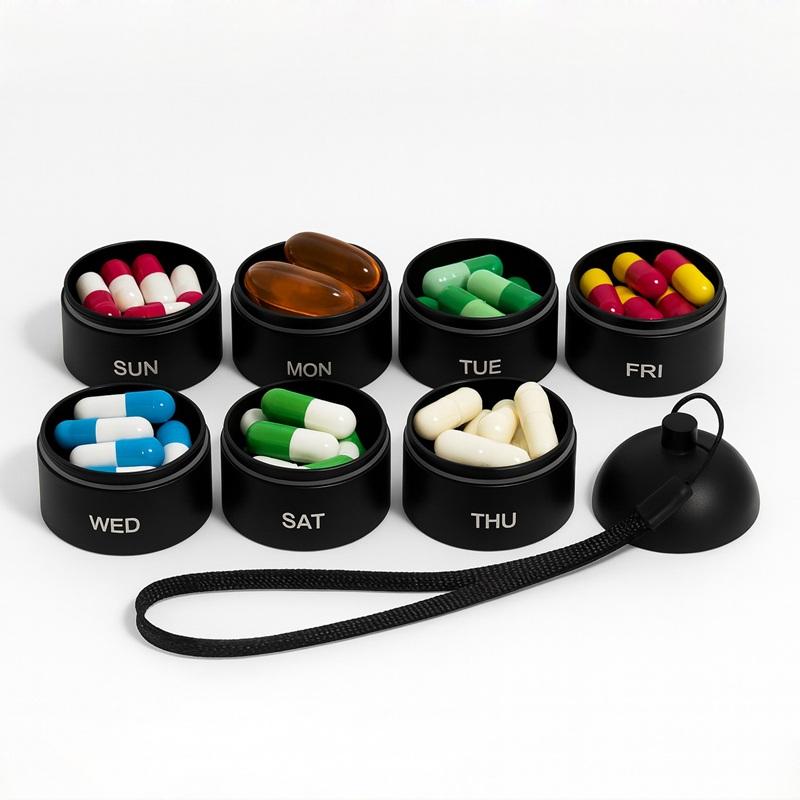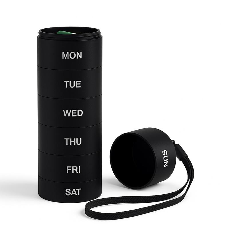Palabra clave:Caja organizadora de pastillas portátil, pastillero de viaje, pastilleros elegantes