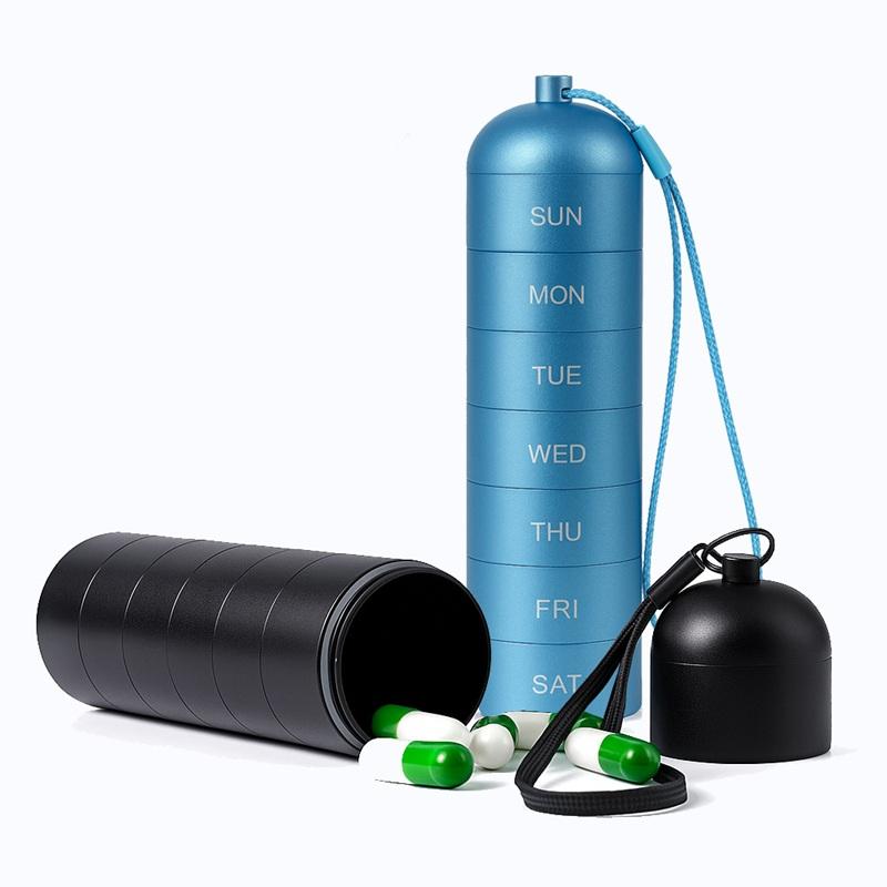Organizador de Pastillas Semanal Portátil de 7 Días con Pastillero de Aleación de Aluminio Impermeable para Uso Promocional y Almacenamiento Fácil para Viajes